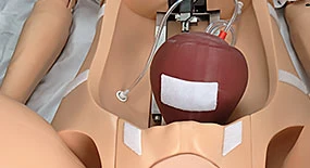 Utilizzo dell’utero postparto e programmazione dell’emorragia postparto, esecuzione di un massaggio del fondo uterino e inserimento e gonfiaggio di un palloncino Bakri. Utilizzo dell’inserto per episiotomia per fare pratica sulla riparazione delle episiotomie. Serbatoio di sangue da 1,5 l e livelli di sanguinamento programmabili. Parto Podalico